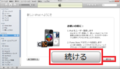 iTunesが起動してiPodユーザー登録、iTunes Storeアカウント設定画面になります。
